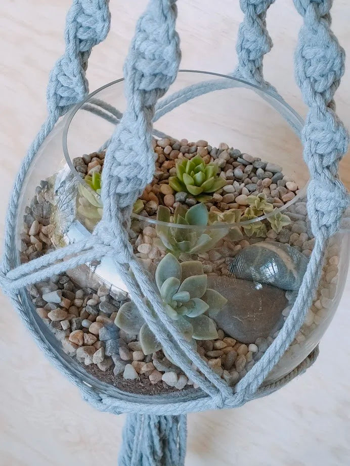 Custom macramé pieces are designed around your needs and style. This can include plant hangers, wall art, or other woven designs, made in a range of colours and sizes.
